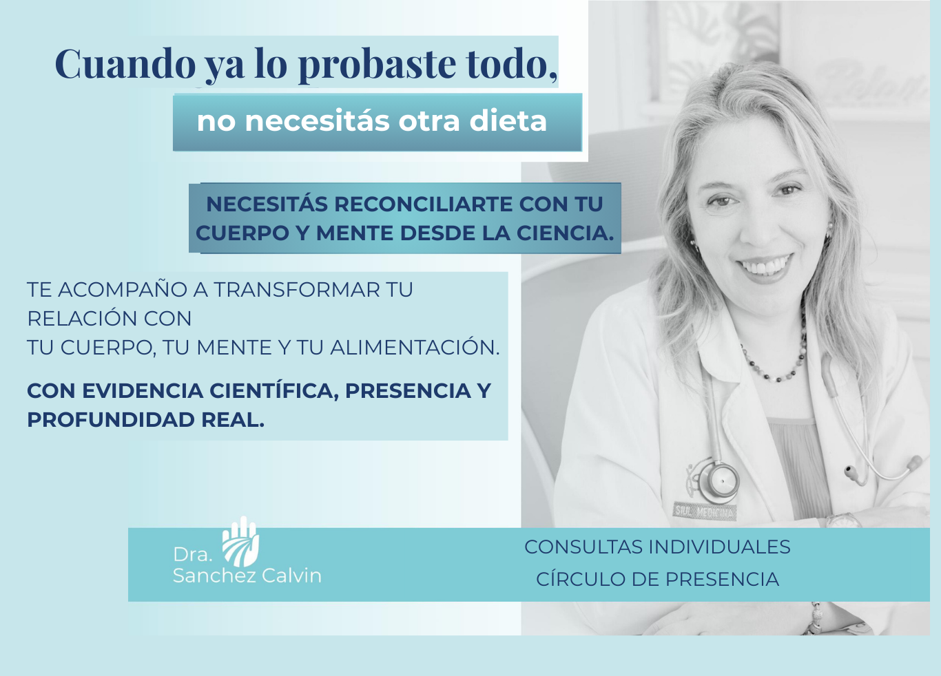Acompaño a personas que ya probaron distintos enfoques a transformar su relación con el cuerpo, la alimentación y el bienestar emocional desde la evidencia científica y la presencia consciente