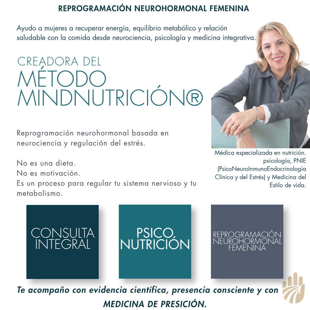 Creadora del Método MINDNUTRICION, un método único de abordaje interdisciplinario que promueve hábitos saludables con base científica, respeto y autocompasión.